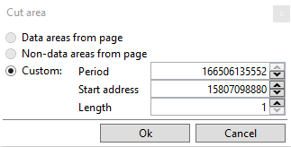 At the point, where Lenght is being specified, user can in fact apply any value needed. E.g. three blocks from the case of figure 9. would be 3 × 7,041,024 bytes, which is 21,123,072 bytes, and setting this value as Length in configuration of Extract area will result in extraction from dump that has length of three blocks. This is how extracted area can be scaled up or down just by modifying Length value (fig.9.b).