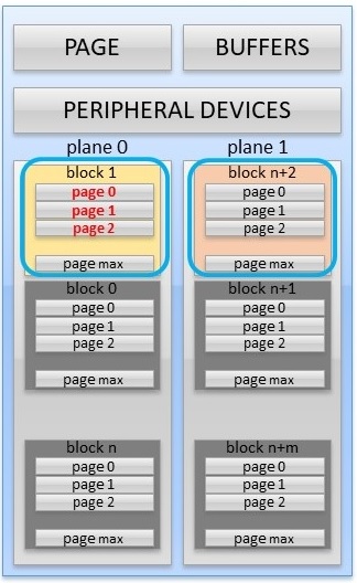 where user data is written and stored permanently. Single NAND crystal consists of one, two or four such planes