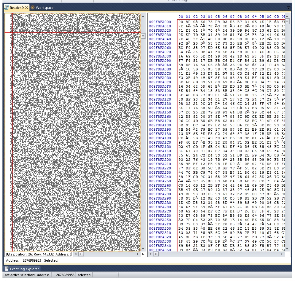 Let's check the reverse case: the NAND was using DDR mode, but the configuration in VNR is for SDR mode. The answer is also in the bitmap. The first thing we need to check is the first byte. If we are reading the memory in SDR mode, but the memory was used in DDR mode, then the first byte is almost always empty. However, this is not a rule for all cases. The second thing to check, and it always proves the reading mode is correct, is the middle of the page. If the memory was used in DDR mode, and we are reading it in SDR mode, we are reading only half of the bytes, and the data ends in the middle of the page, not near the end. In that case, we need to check how it looks when we change from SDR to DDR mode, and it is important to change from Async SDR to Async DDR or WL SDR to WL DDR. The rest of the protocol, except the reading mode (SDR/DDR), must remain the same.